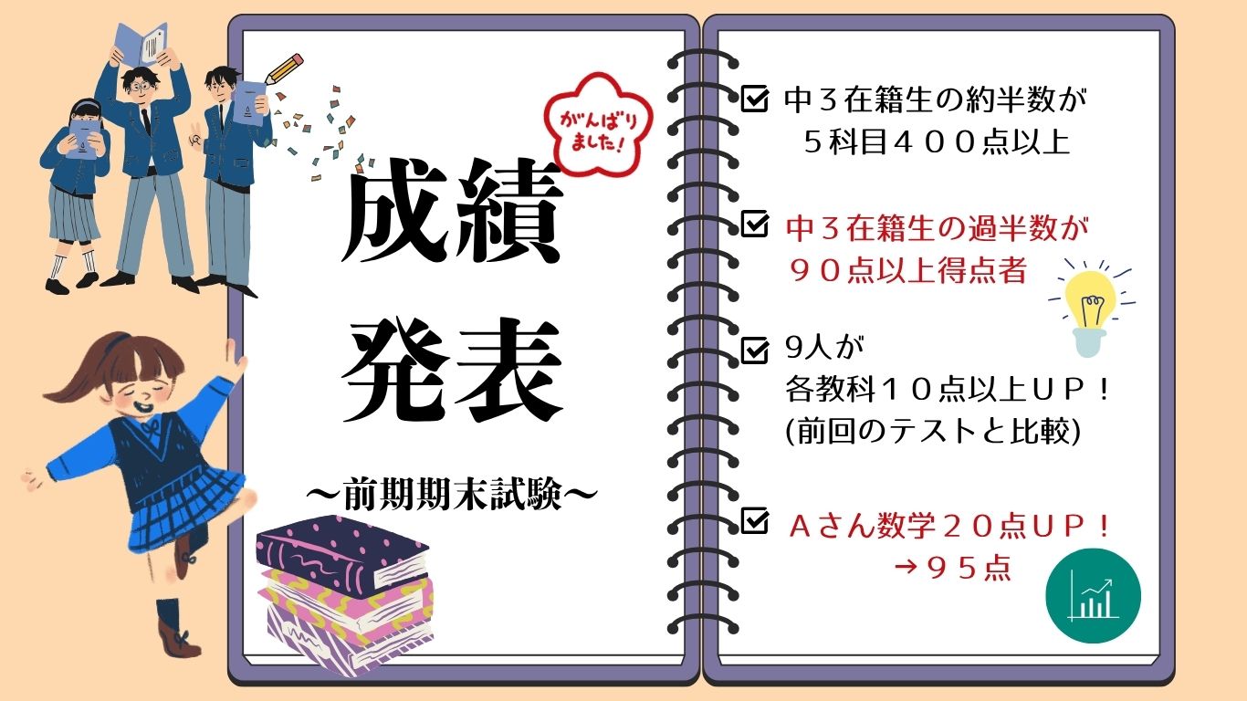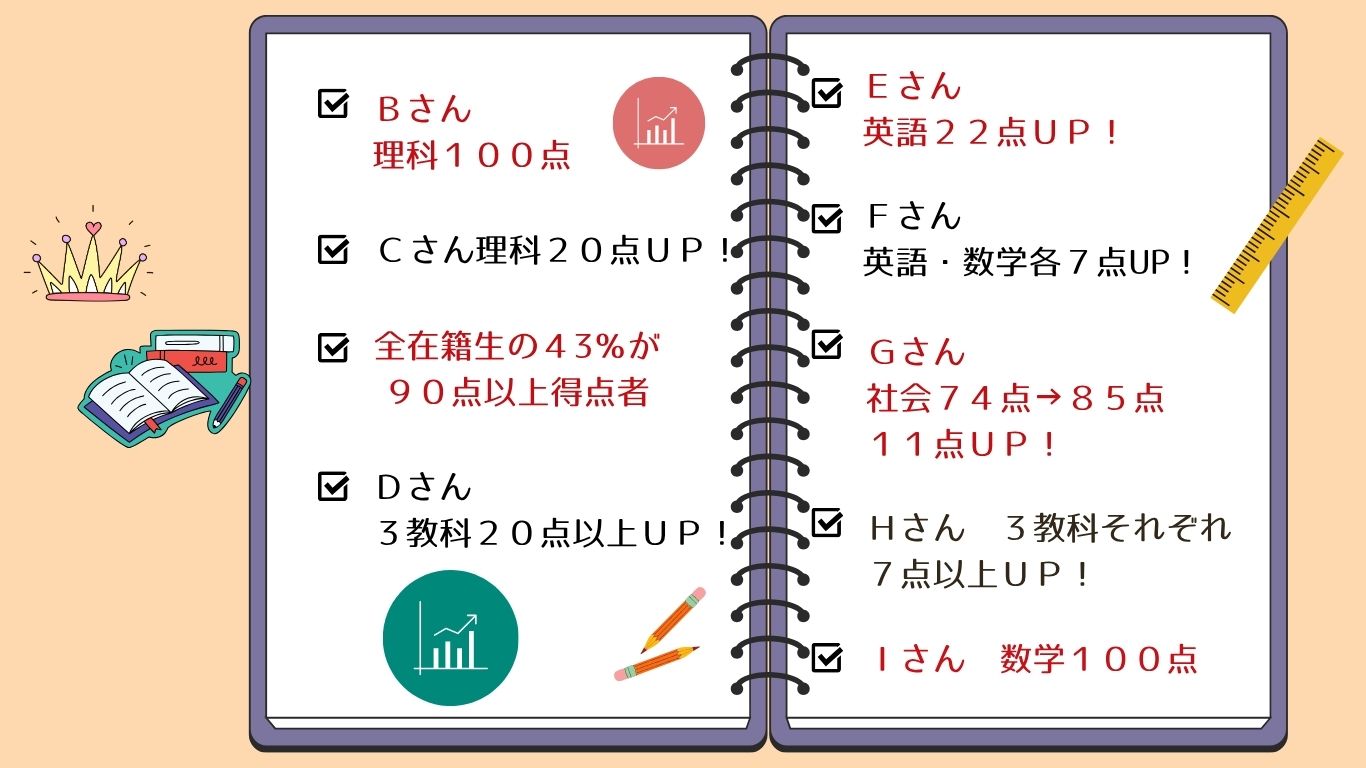 多摩英数進学教室中野島校では、成績の上げ方を一人一人の生徒と相談し、学力を強化していきます。また、成績を「つけてもらう」から、「自分の目標の成績を取りに行く」に思考方法を変えていきます。