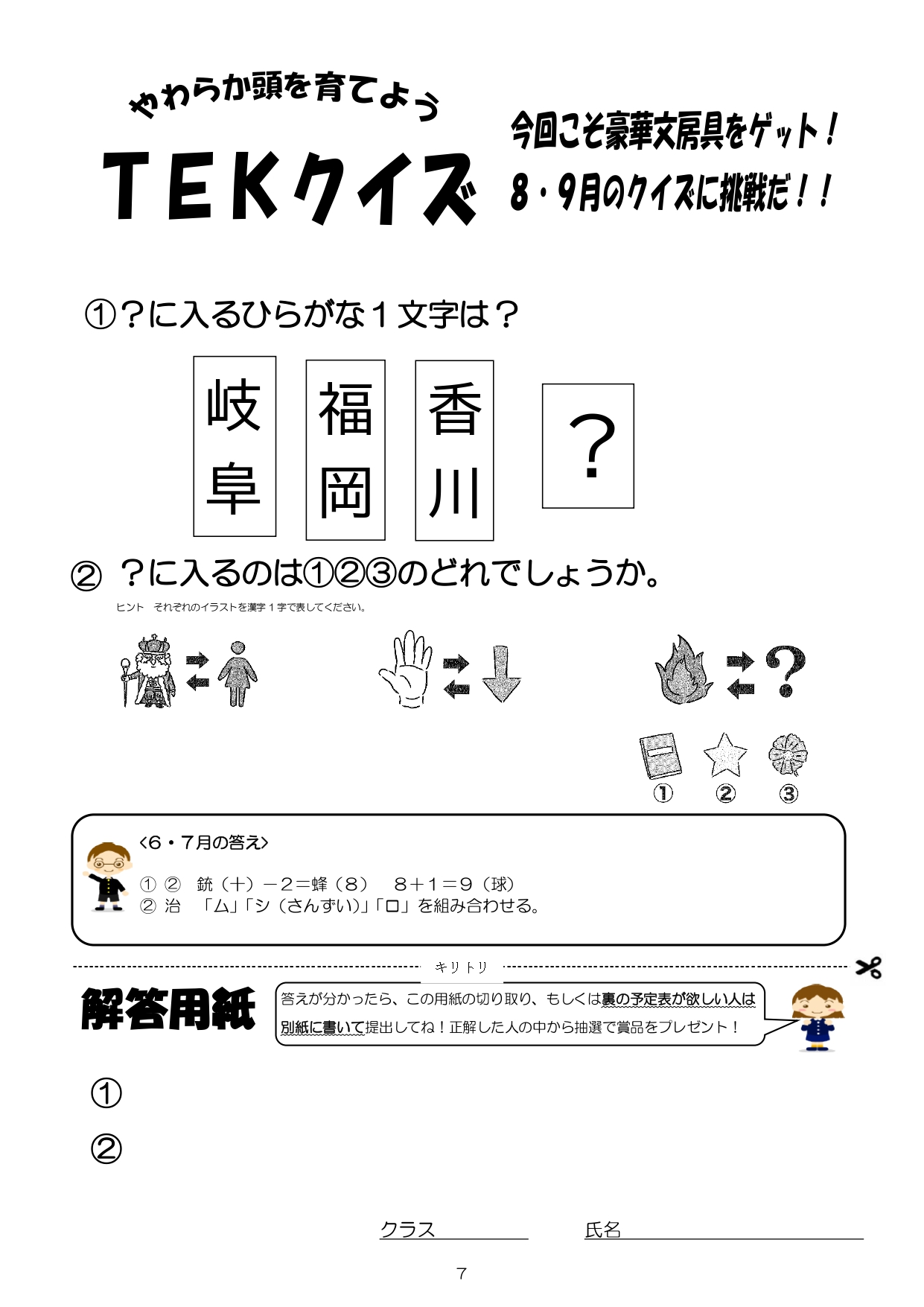 クイズの答えを書き、教室にあるTEKクイズ回収BOXに入れると景品が当たるかも!?