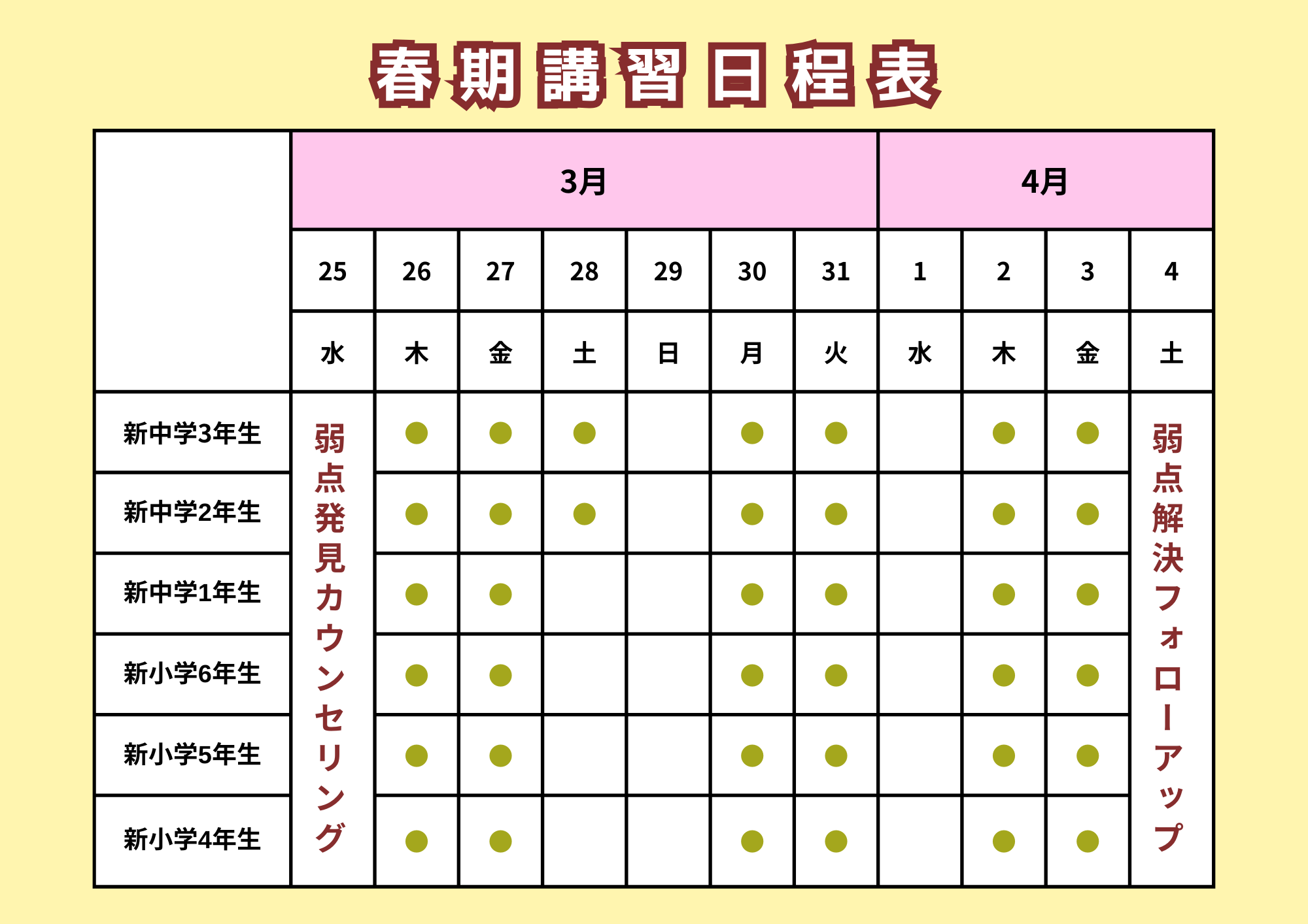 ・春期講習費無料(教材費は別途頂戴します)